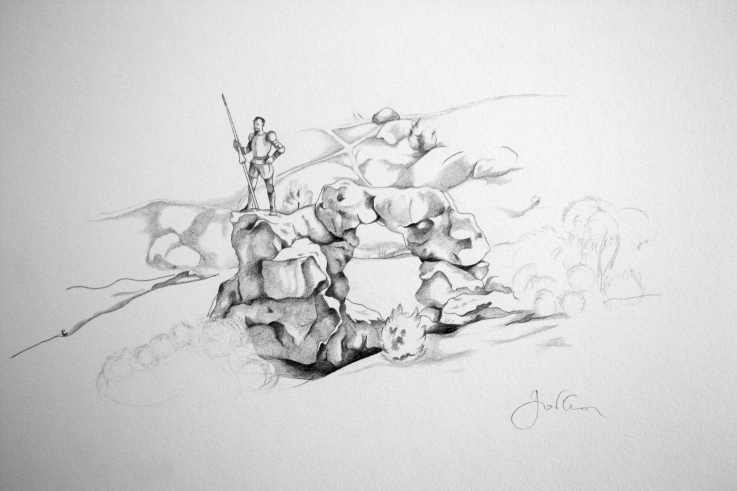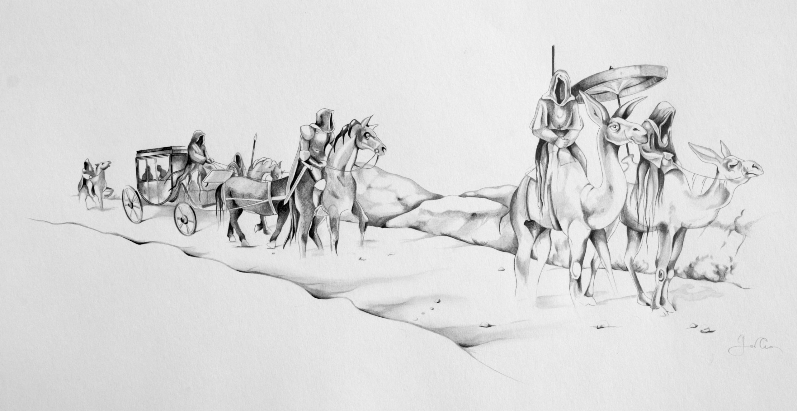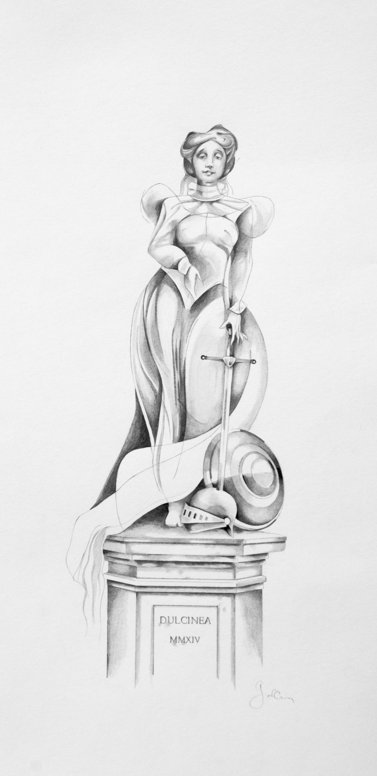 Don Quichotte à Dulcinée du Toboso, mines graphites, 40 x 17 cm, collection particulière, 2014.