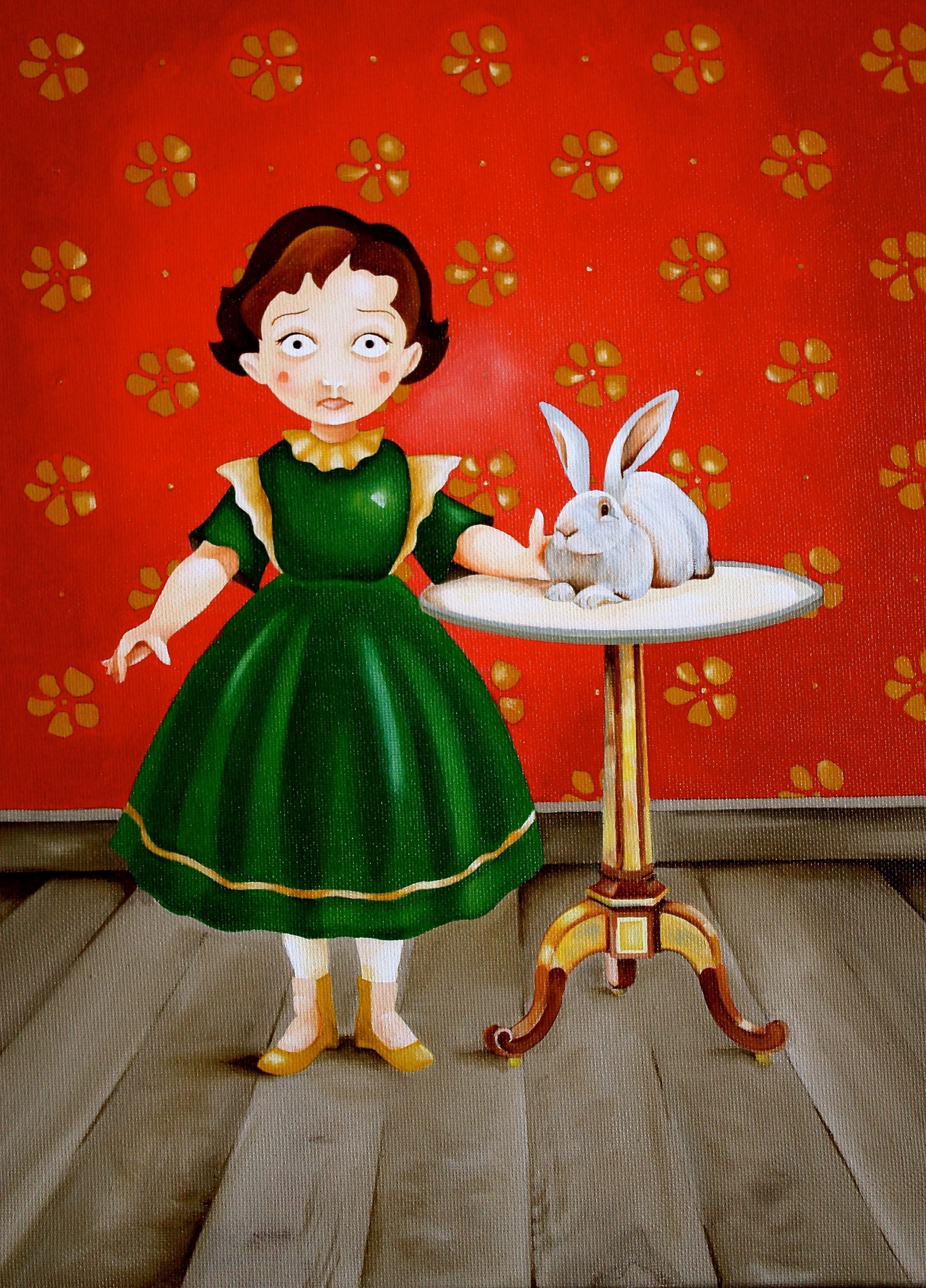 Ces P’tites Mignonnes faisaient partie d’un ensemble de petits tableaux que j’ai initié il y a déjà quelques années. Je voulais réaliser une série de portraits d’enfants un peu étranges. Plusieurs croquis étaient venus, d’un seul jet. J’en ai peu exploité et ai tout vendu. J’ai remisé le reste des ébauches, depuis. Elles dorment toutes paisiblement, ces jolies curieuses, en attendant leur heure.
