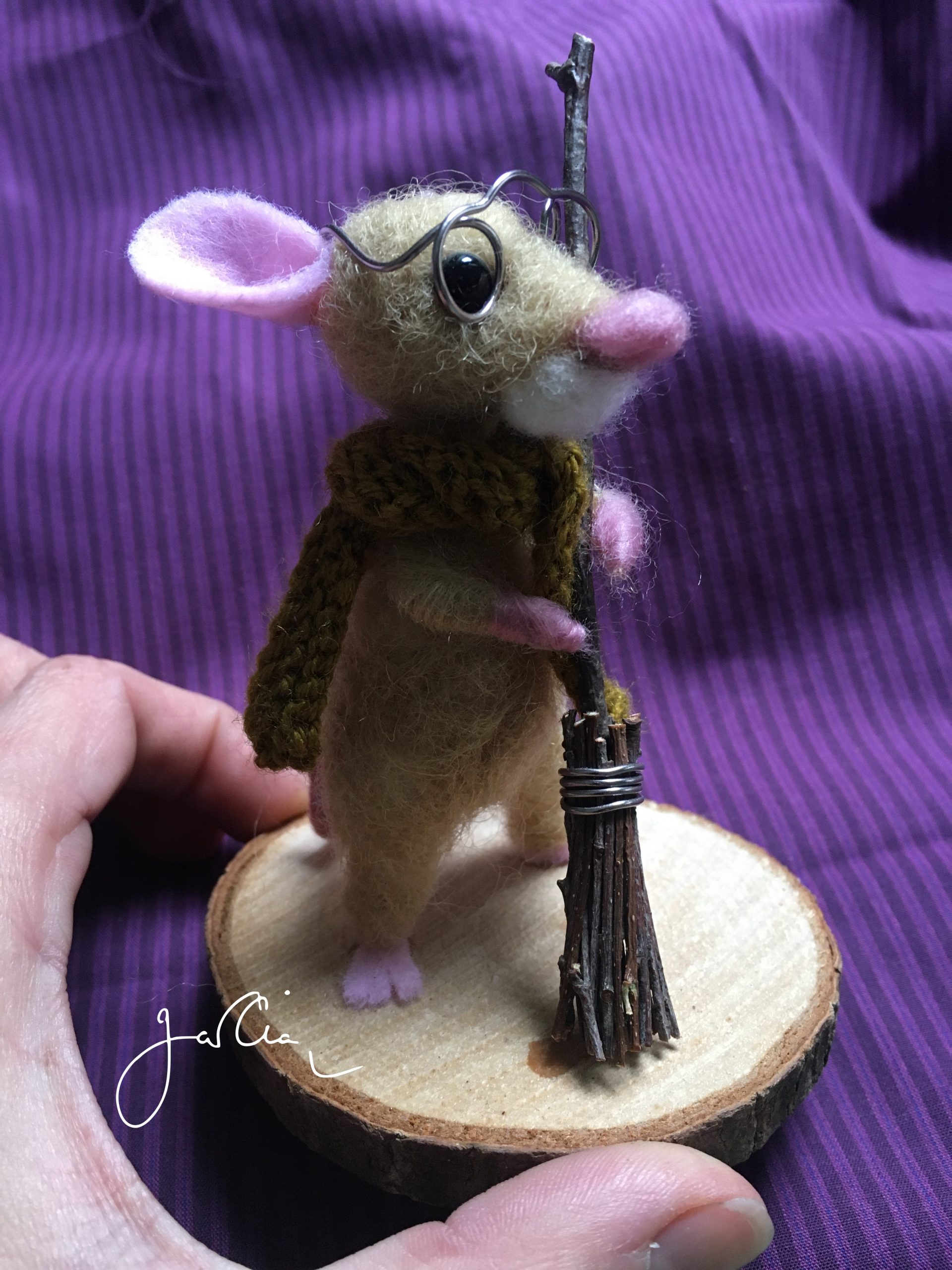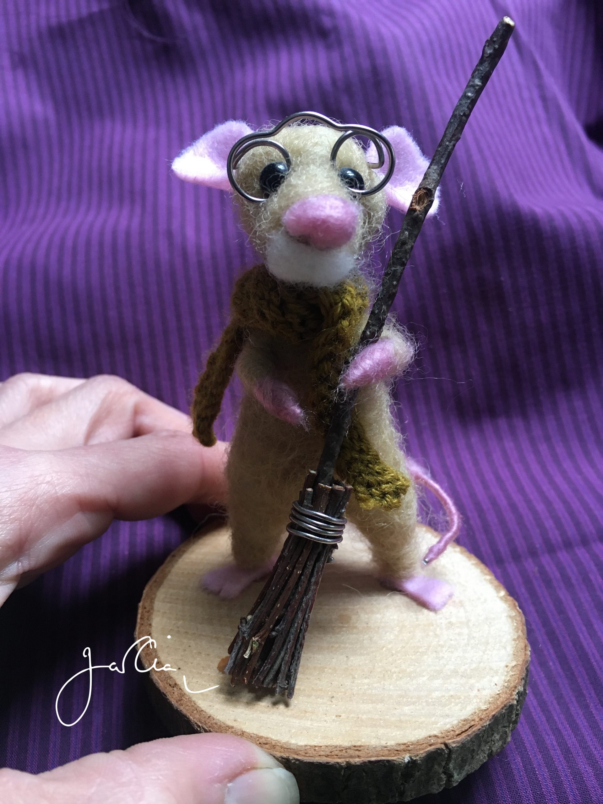 Matières : laine cardée, feutrine, bois et fil d’aluminium