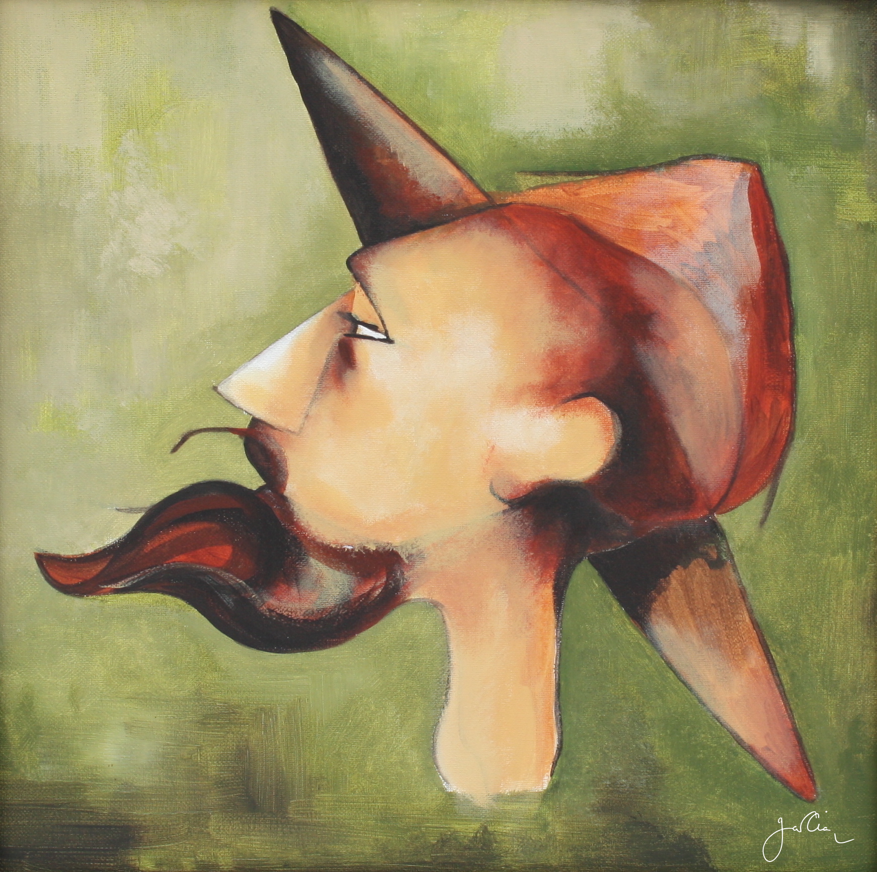 Caballero andante, encre et acrylique sur toile, 40 x 40 cm, D-Q-081, collection particulière, 2008.